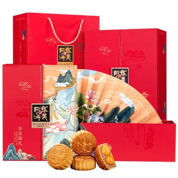 华美御礼双黄纯白莲蓉中秋月饼礼盒经典广式月饼送礼1520g