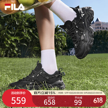 FILA斐乐女鞋老爹鞋火星鞋潮流复古轻便厚底运动鞋女 黑-BK 38.5