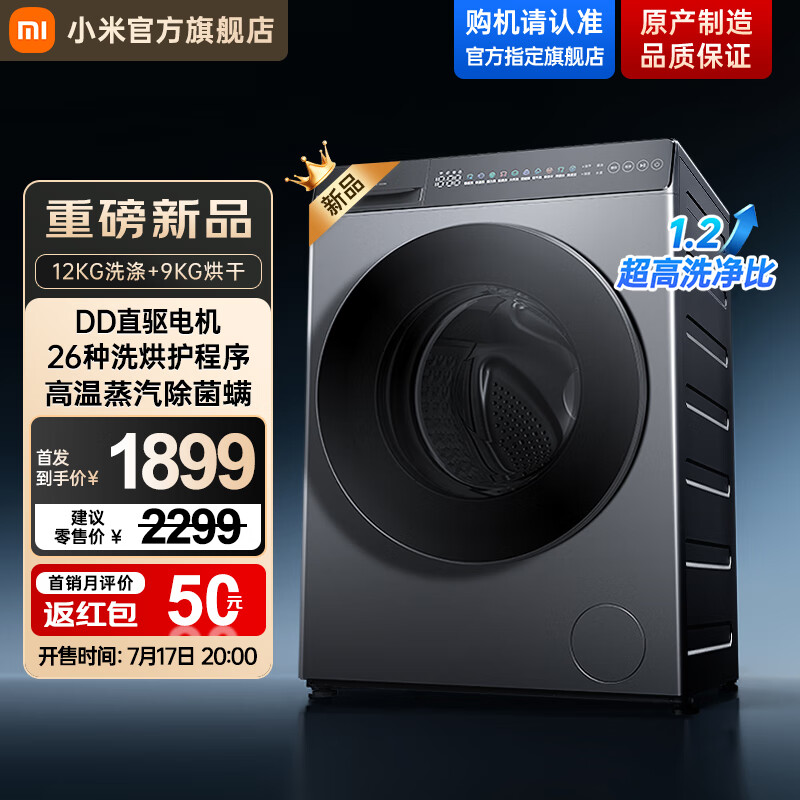小米米家【新品首发】12公斤大容量直驱洗烘一体全自动洗衣机 高温蒸汽除菌螨 1.2超高洗净比 智能烘干