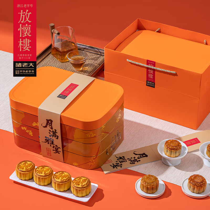 诸老大&放怀楼 月饼礼盒中华老字号月满雅宴18饼1080g三层铁盒中秋礼盒
