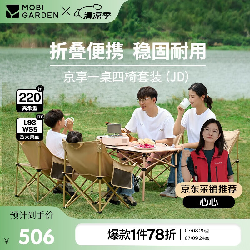 牧高笛(MOBIGARDEN)京享折叠桌椅套装 户外露营野餐烧烤一桌四椅 NX25665020 和风沙