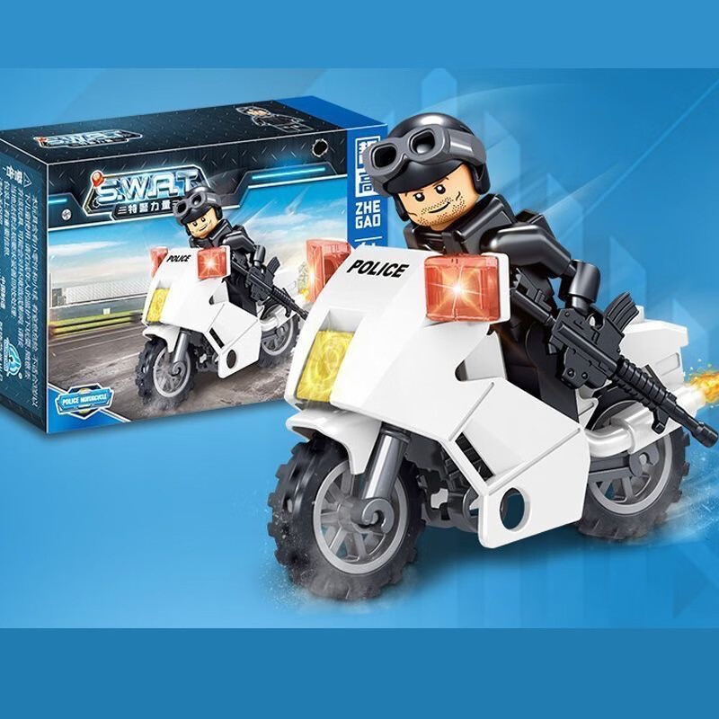 哲高积木特警摩托警察军事人仔拼装玩具儿童男孩生日礼物学生奖品 5号