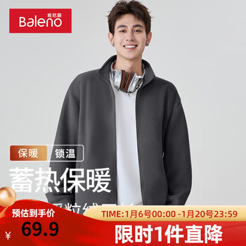 班尼路摇粒绒外套男款春秋季休闲潮牌男生开衫卫衣加绒加厚男士立领夹克 【摇粒绒】-中灰#纯色 XL 【宽松显瘦 休闲百搭】