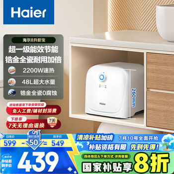 海尔(Haier)【ES8-FY22】8升电热水器小厨宝 隐藏后出水 国家补贴20% 2200W速热一级能效厨房卫浴小尺寸储水式