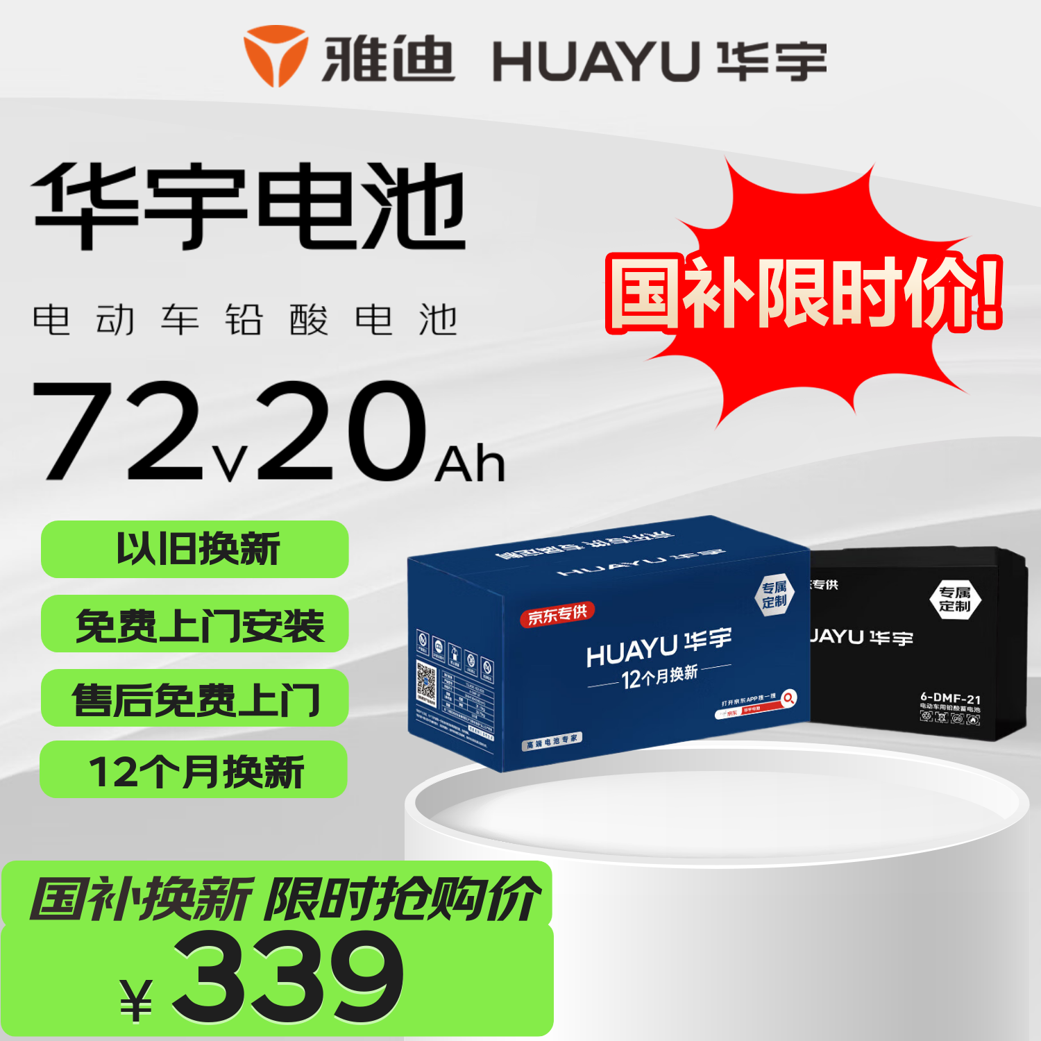 华宇电池电动车电池72V20Ah铅酸电池雅迪专用 免费上门安装
