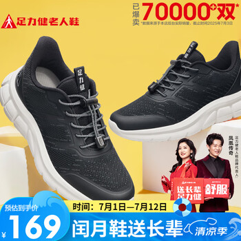 足力健老人鞋中老年春夏季轻便休闲散步鞋2431380J 男 黑色 42