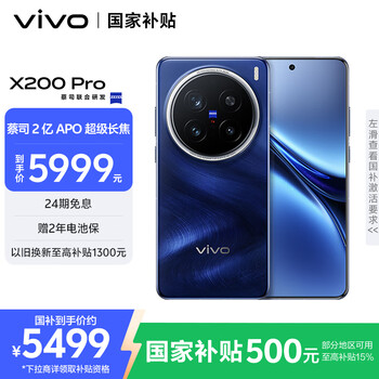 vivo X200 Pro 16GB+512GB 宝石蓝 国家补贴 蔡司2亿APO超级长焦 蓝晶×天玑9400 拍照 AI 手机