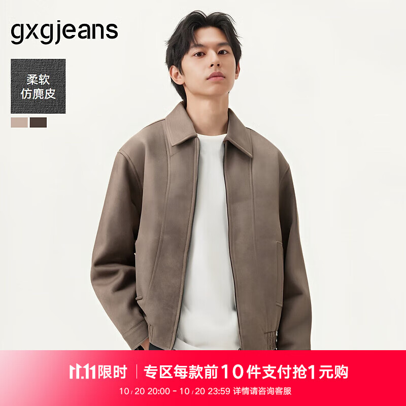 gxg.jeans男装* 多色仿麂皮时尚宽松美式翻领夹克外套男 25春新品 浅棕色 L (175)