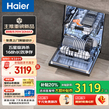海尔W30MAX洗碗机嵌入式16套大容量【朗境系列】一级水效分区洗80℃高温除菌洗智能开门速干洗消存一体 新品W30MAX 168h存储 50000Pa水压