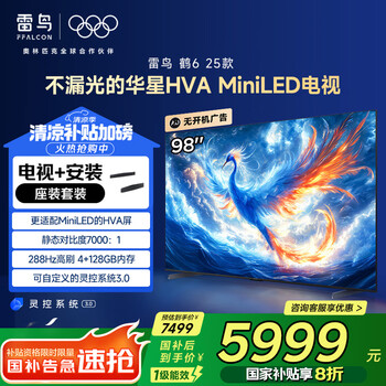 FFALCON雷鸟 京东联合首发 鹤6 25款 98英寸【底座送装一体】MiniLED 一级能效家电国家补贴电视机98S595C