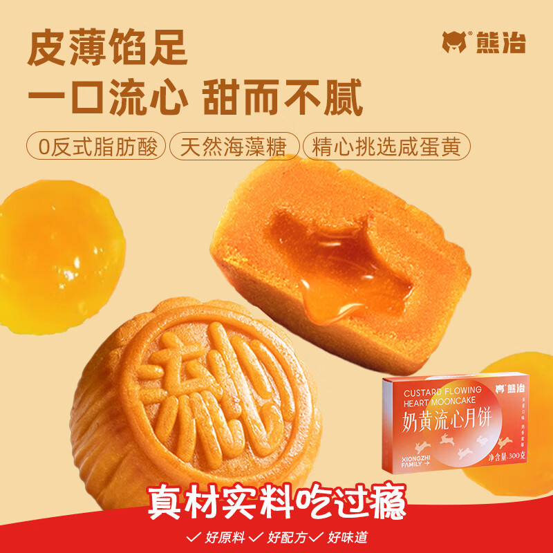熊治咸蛋黄奶黄流心月饼经典广式流心奶黄味带礼盒礼袋 奶黄流心月饼*2盒(12枚)