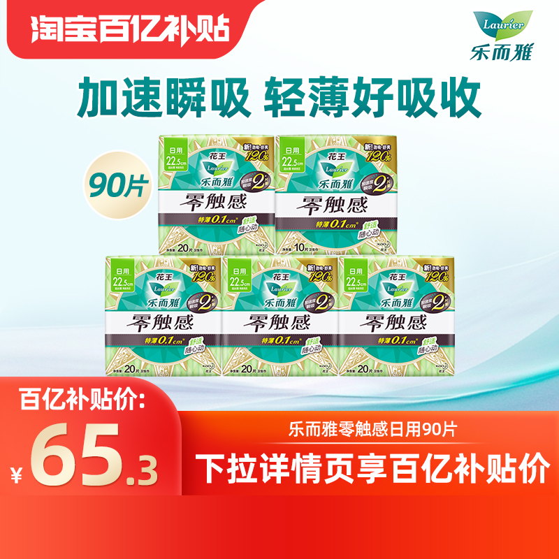 【下拉享补贴】百补花王乐而雅卫生巾零触感超薄透气日用组合90片