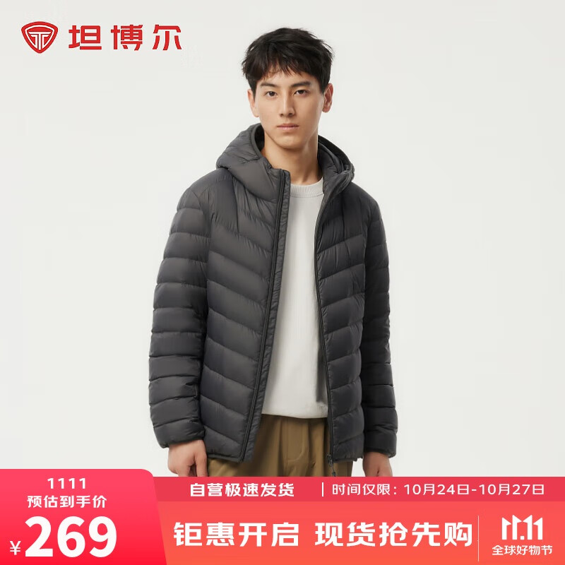 坦博尔羽绒服春款保暖百搭通勤百搭男款轻薄连帽外套TF246209陨石灰175