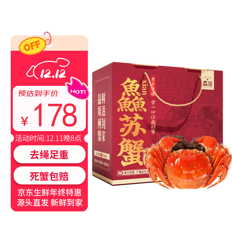【活蟹】鱻谣大闸蟹全母3.5-3.8两4对8只去绳足重鲜活螃蟹现货生鲜蟹礼盒江苏泰州兴化