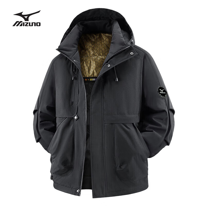 美津浓户外棉服男宽松连帽男女同款保暖防风夹克外套锋衣棉袄 黑色 XS