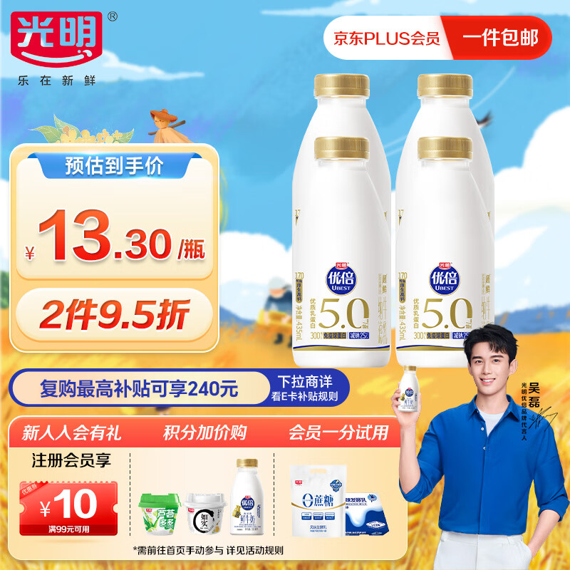 光明优倍5.0超鲜牛奶435ml*4瓶【吴磊推荐】75℃巴氏杀菌 早餐搭档