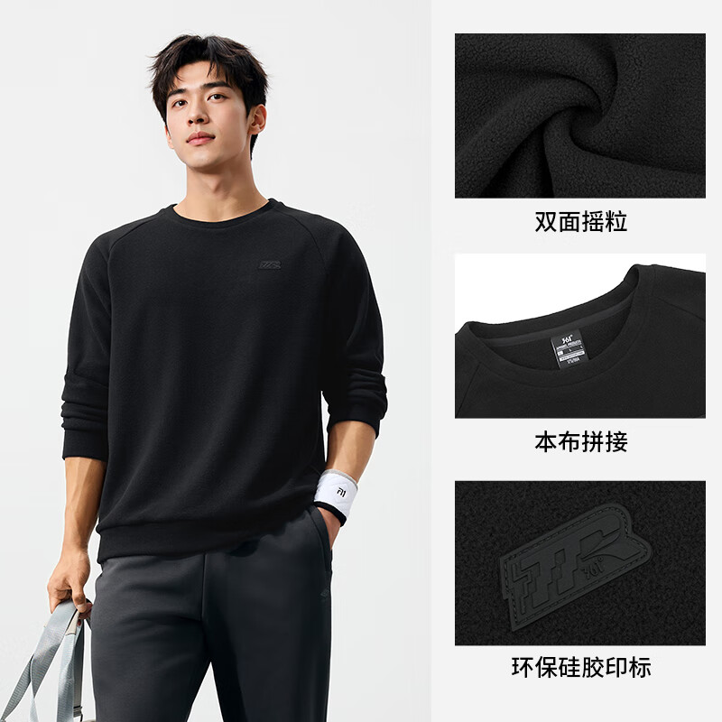 361°运动卫衣男秋冬季新款摇粒绒套头卫衣女情侣常规舒适保暖上衣 【男款】超级黑-4805 2XL