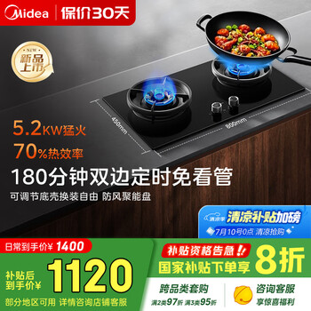 美的(Midea)【搭配蒸汽洗系列】行业爆款家用5.2KW大火力燃气灶双边定时灶台嵌两用双灶天然气灶JZT-QD529