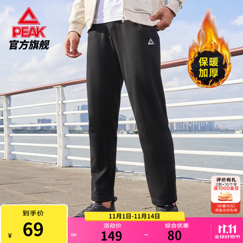 匹克针织运动裤男冬季跑步加绒梭织长裤休闲裤运动服男直筒裤束脚裤子 【秋冬加绒直筒裤4011】黑色 L (175)