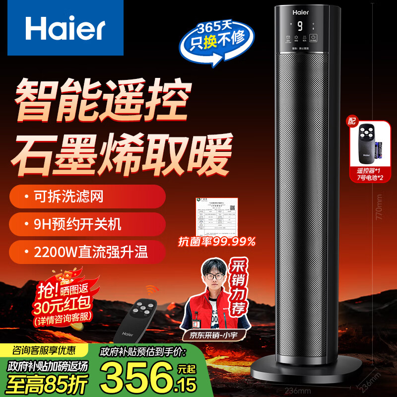 海尔(Haier)暖风机石墨烯速热取暖器家用立式电暖器遥控定时卧室电暖气电热取暖器京东自营热风机NHF-S2245