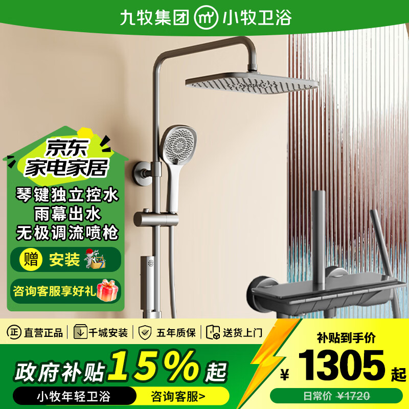 九牧(JOMOO)淋浴花洒全套装小牧卫浴增压卫浴软管喷头除垢顶喷洗澡手持家用 5200枪灰丨满天星雨幕丨琴键置物