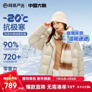 网易严选中国大鹅【24冬季】90白鹅绒羽绒服加厚保暖5A高蓬松云感-20℃ 【24升级】短款-浅米驼 M