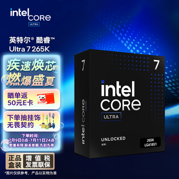 英特尔(Intel)酷睿 Ultra 7 265K 台式机处理器 20核20线程 盒装CPU 游戏电竞办公 畅玩黑神话悟空