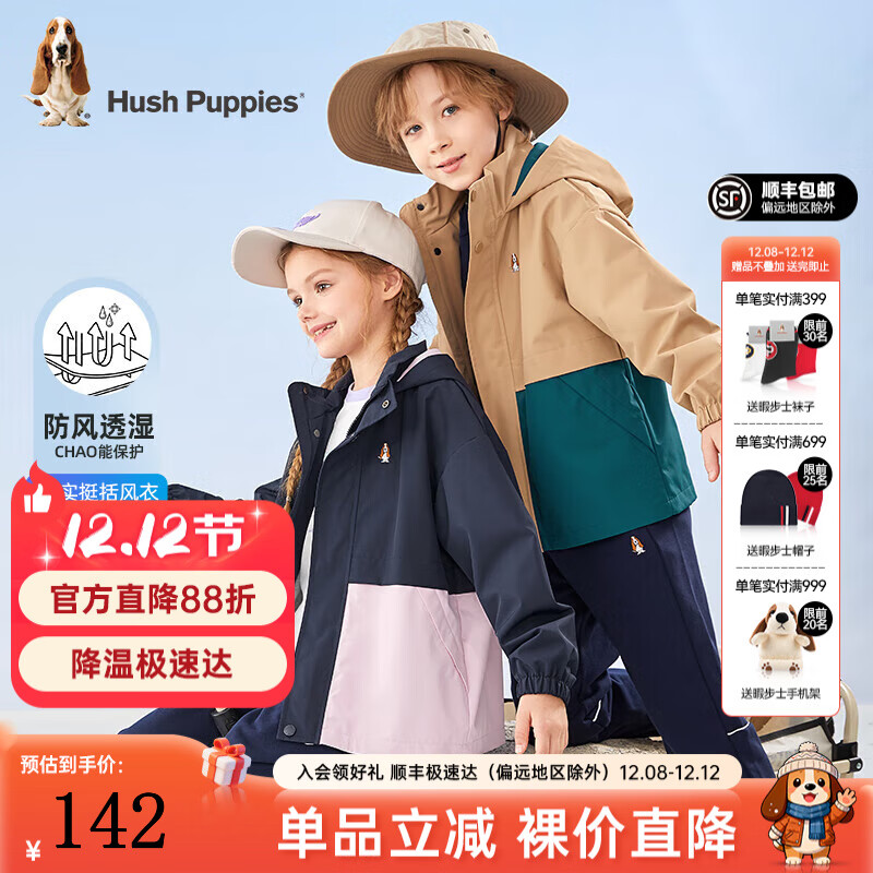 暇步士(Hush Puppies)童装儿童春秋季经典款风衣外套男童款时尚百搭风衣外套青春休闲 幻夜绿(D款) 150cm