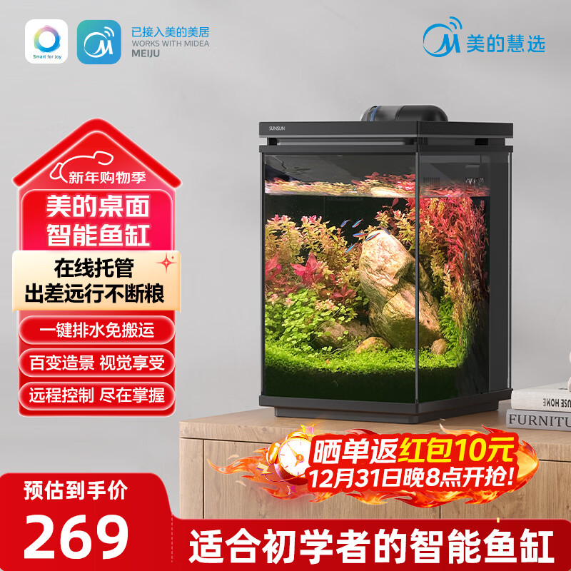 美的(Midea)美的慧选智能生态桌面鱼缸智能托管定时定量科学喂养适合小白养鱼 桌面智能鱼缸