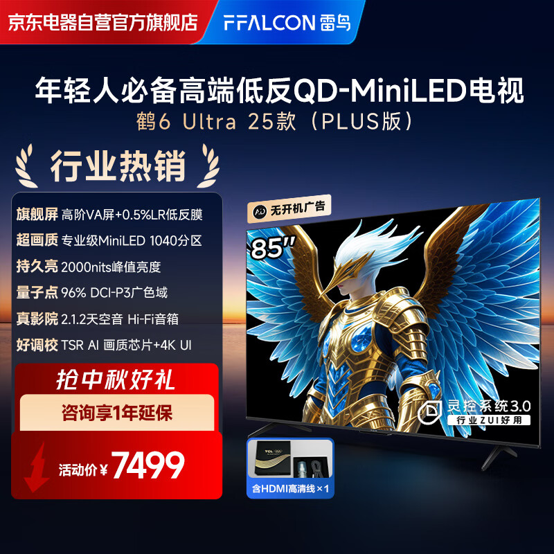 FFALCON雷鸟电视 85鹤6 Ultra 25款(PLUS版) 85英寸QD-MiniLED高阶VA 家电电视85S595C Ultra-A