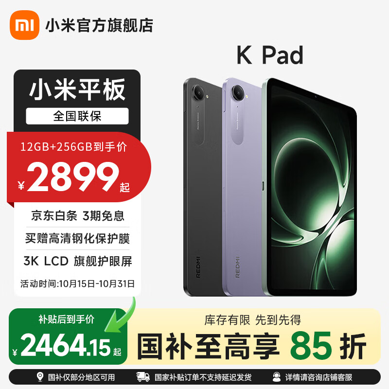 小米平板 REDMI K Pad 红米平板电脑 8.8英寸 3K屏 天玑9400+ 电竞娱乐大屏平板 云杉绿 12G+512G