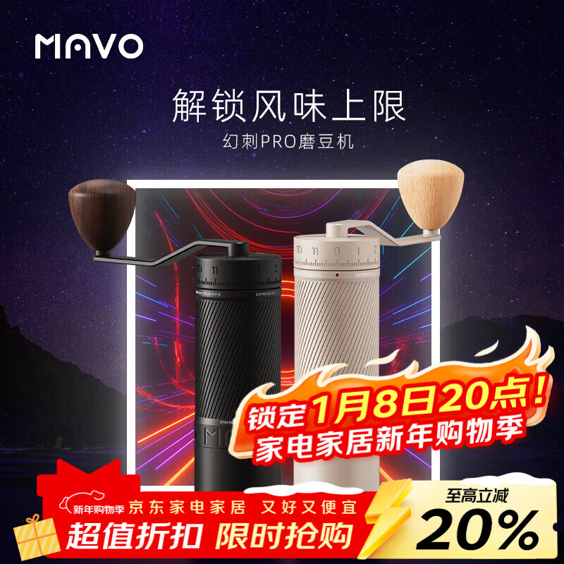 MAVO幻刺PRO磨豆机 手磨咖啡机手摇磨咖啡豆粉器研磨机 手动现磨 星光银