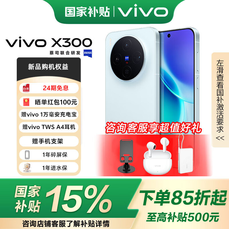 vivo X300 国家补贴 蔡司2亿超级主摄 蔡司APO超级长焦 5年持久流畅OriginOS 6 拍照 AI手机 自在蓝 12+256GB