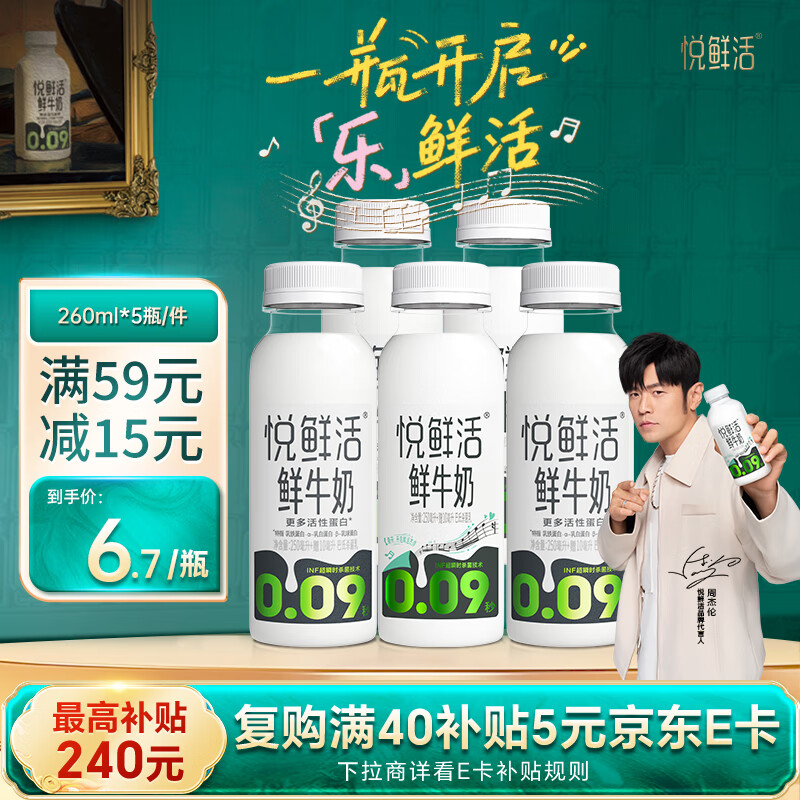 悦鲜活 鲜牛奶 260ml*5瓶 高钙巴氏杀菌乳 生鲜 低温奶