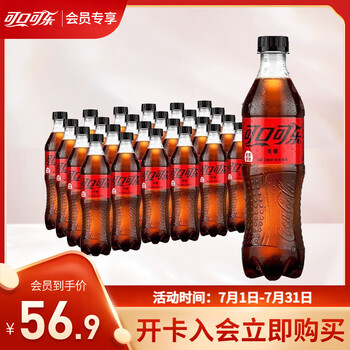 可口可乐(Coca-Cola) 无糖汽水碳酸饮料500ml瓶 0糖0脂肪 无糖可乐500ml*24瓶