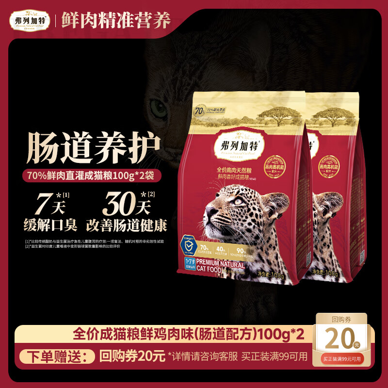 弗列加特 全价鲜肉天然粮 肠道养护配方 成猫猫粮鸡肉200g