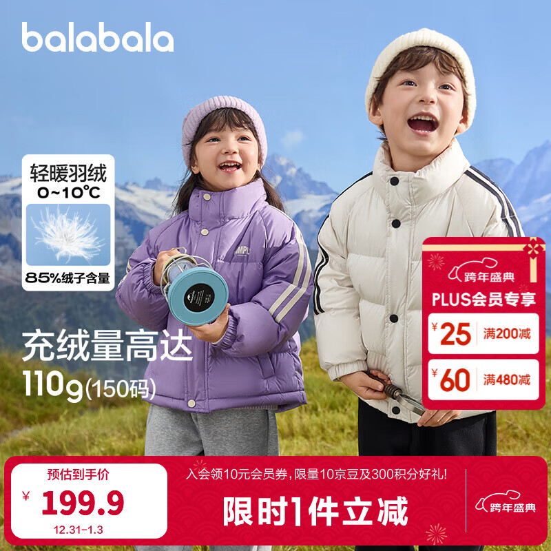 巴拉巴拉儿童羽绒服男童女童冬装保暖宝宝外套学院风校服亲子装潮 白黑色调00419(白鸭绒) 150 cm(充绒量110g)