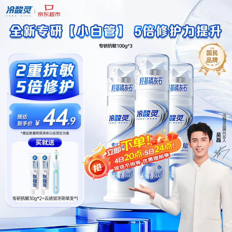 冷酸灵专研抗敏泵式牙膏 羟基磷灰石成分 100g*3支装【吴磊推荐】