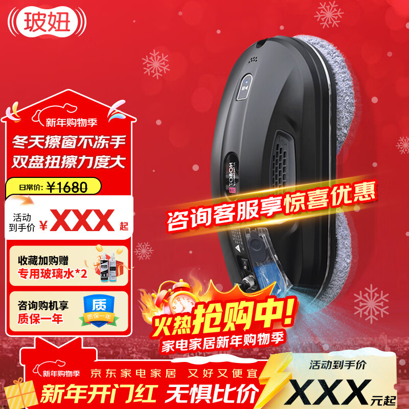 玻妞(HOBOT)全自动家用喷水擦窗机器人波妞擦玻璃机器人 干湿两用擦玻璃窗神器 玻妞388