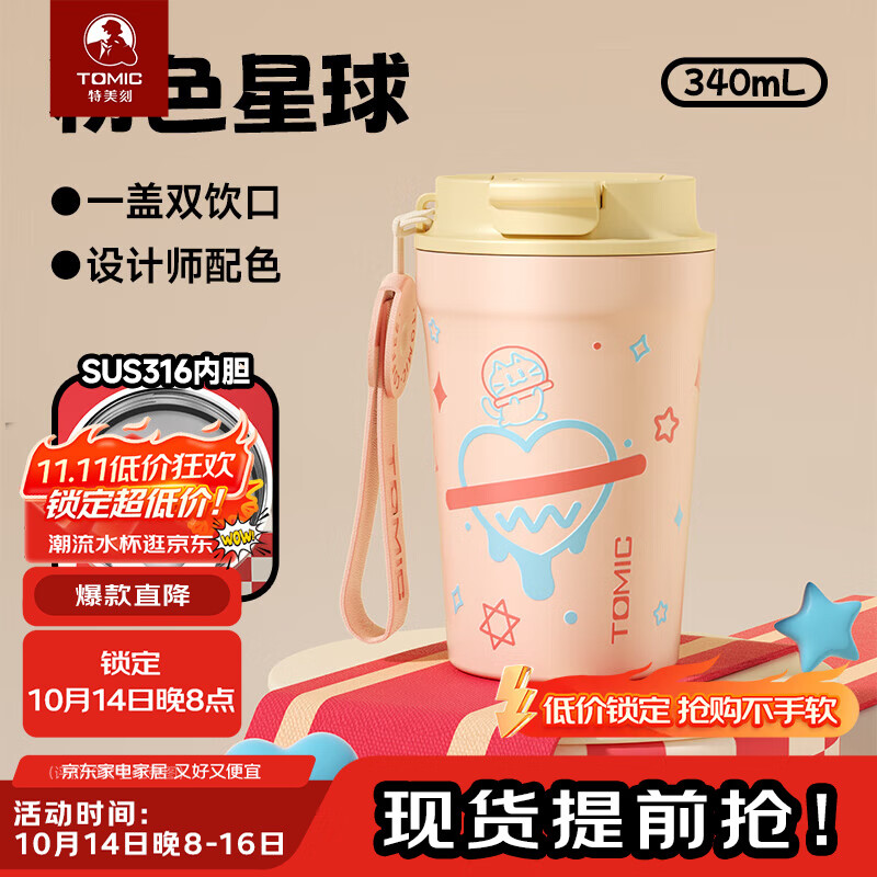 特美刻(TOMIC)保温杯女士咖啡杯便携316不锈钢学生水杯小容量高颜值原创情人节 粉色星球【316内胆】340ml