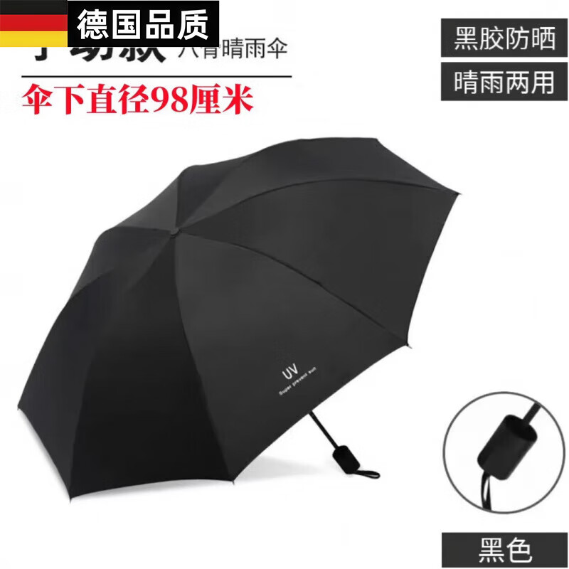 FOURDATRY德国品质72骨雨伞折叠伞感遮阳伞太阳伞雨伞女感雨伞自动 【手动款】曜石黑加固晴 雨伞 8骨 晴雨两用伞【不带礼盒】