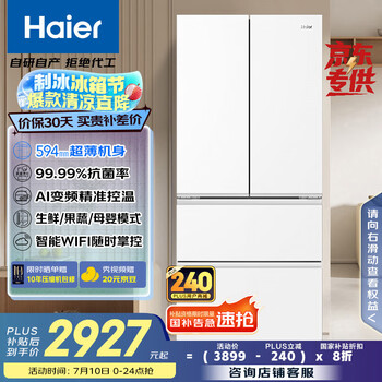 海尔(Haier)小红花-绽放版500升594mm专业超薄法式多门一级能效家用电冰箱BCD-500WGHFDEDWVU1国家补贴20%
