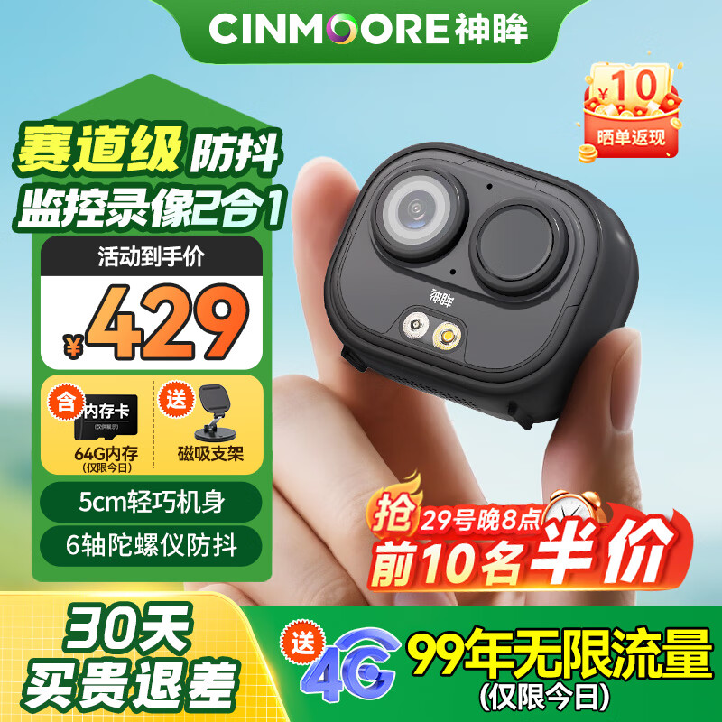 神眸口袋摄像头4g终身免流量加强防抖动便携随身记录仪免插电无需连wifi监控器无线免打孔高清夜视BC6+