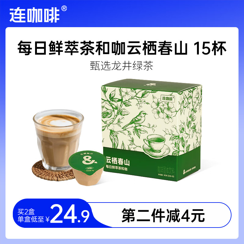 连咖啡新品茶咖每日鲜萃速溶咖啡粉意式浓缩拿铁冰美式夏季 云栖春山2g*15颗