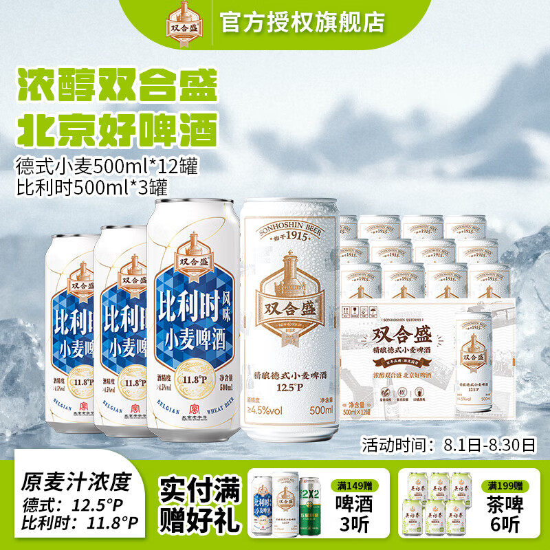 双合盛德式精酿12.5°P+比利时白啤小麦啤酒百年老字号11.8°P 德式500ml*12罐+比利时500ml*3罐