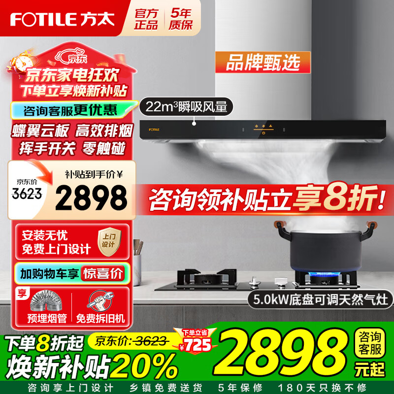 方太(FOTILE)欧式油烟机燃气灶 EMC2A顶吸式抽吸油烟机灶具套装 厨房烟灶套装 【两件套】烟机+5.0KW猛火换装灶TH32B