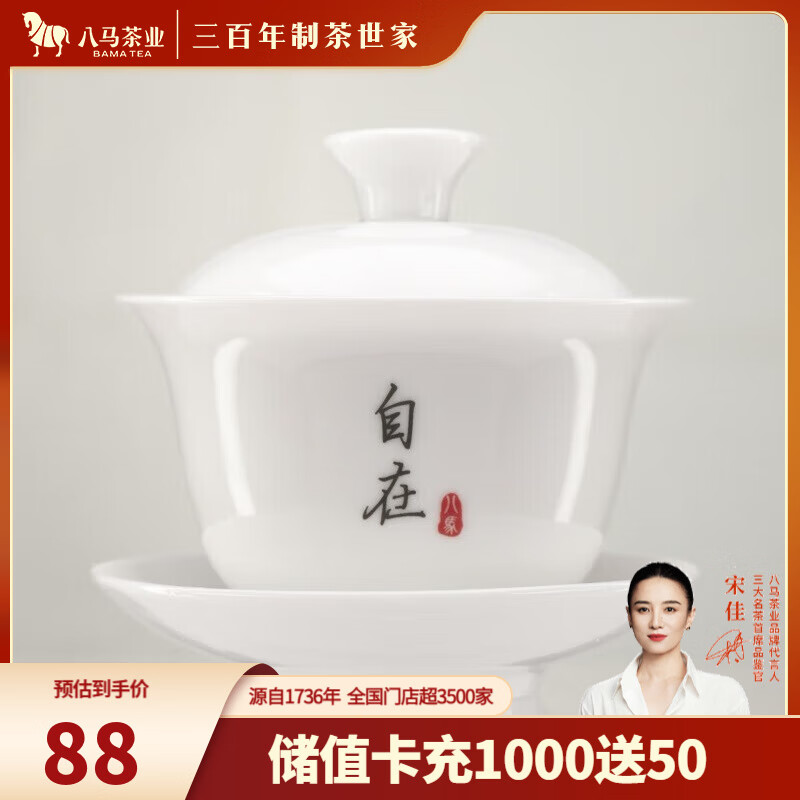 八马茶业 茶具 陶瓷泡茶杯 白瓷盖碗130ml