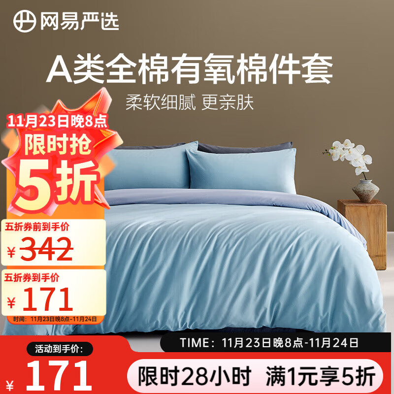 网易严选A类柔有氧全棉四件套卧室宿舍学生新疆棉新工艺柔软亲肤 【升级加厚】竹月绿 床单款 【四件套】1.5m床:2x2.3m被芯