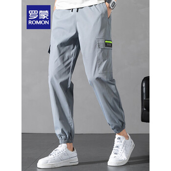 罗蒙休闲裤男2022春夏新款中青年时尚休闲百搭男士工装裤 灰蓝 XL
