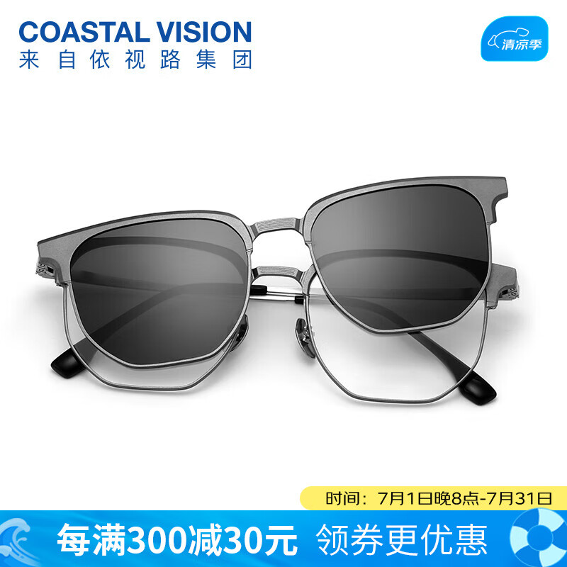 依视路磁吸眼镜男款偏光太阳镜三合一超轻钛光学定制镜架防强光CVF4128 枪色 镜框+依视路膜御防蓝光现片1.60